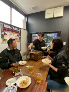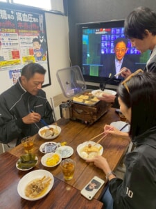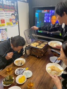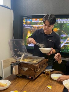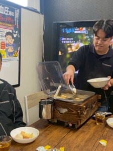 皆、何度もおかわりをし、熱々のおでんを薬味を添えて美味しくいただきました。