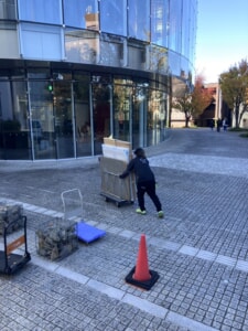 その他にも木箱に入っている作品を運ぶ際は、破損しないよう細心の注意を払って行ったので、こちらもなかなかと大変な作業でございました。