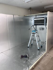 元々、先月より入らせていただいている某大学移転作業の一部で、教育学部研究所にあった『恒温恒湿室』(トップ写真参照)という気密性の高い箱が不用になった為、解体・回収作業をして欲しい、とご依頼をいただいたものです。