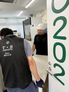 現場が9階建の建物で、エレベーターに入らないような大きい書庫ラックなどもあり、手上げ・手下ろしでの運搬が今回は大変でした(;^_^A