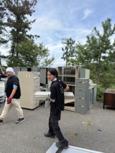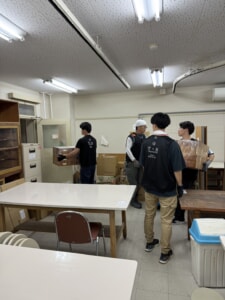 某大学での改装先の荷出し・戻し作業、廃棄物を集めて廃棄場に置く作業です。