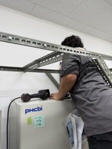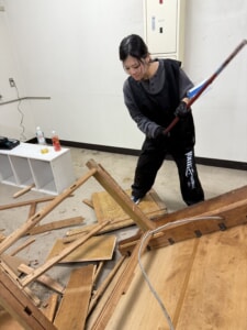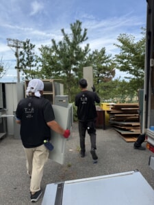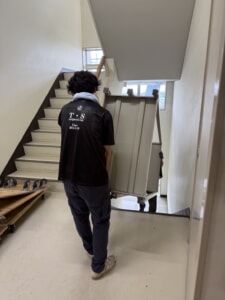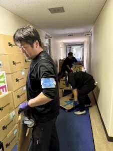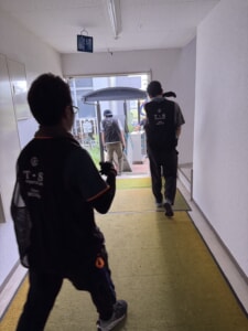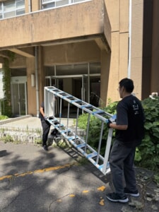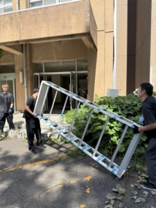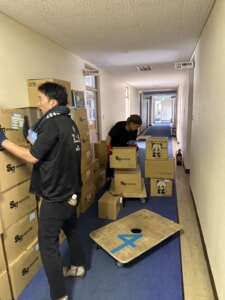 某大学での改装先の荷出し・戻し作業、廃棄物を集めて廃棄場に置く作業です。