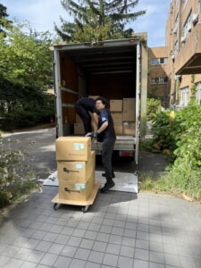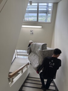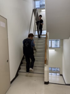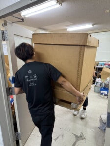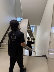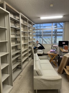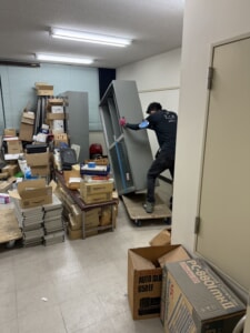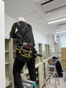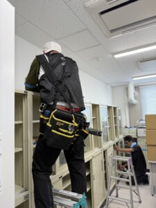 現場が9階建の建物で、エレベーターに入らないような大きい書庫ラックなどもあり、手上げ・手下ろしでの運搬が今回は大変でした(;^_^A