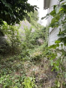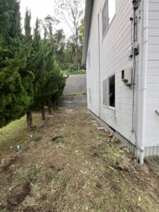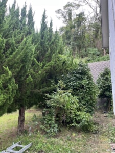 写真にあります様に、木々が青々と茂っておりまして、家主様ではどうにもならない、との事でお受けさせていただきました。